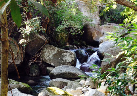 小さな滝や落ち込みから湧き上がるマイナスイオンを含んだ空気を胸一杯吸って、流れの音を聞きながらゆっくり昼寝する・・・