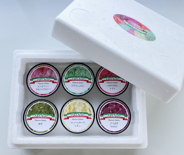フレーバーは、【ストロベリー 秋田さんの紅ほっぺ】【クラウンメロン】【HAPITOMAトマト】【さつま芋 紅はるか】【クリームチーズレモン】【抹茶】の6種類に決定しました。