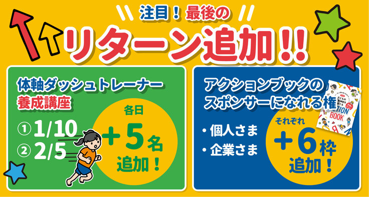 「体軸ダッシュトレーナー養成講座」の参加枠を追加!