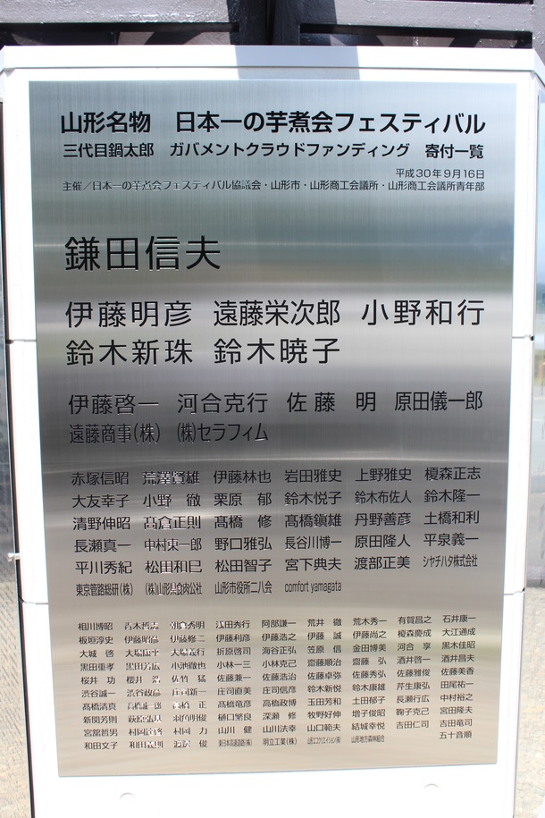 皆様のご支援により、「三代目鍋太郎」が完成し、山形の芋煮文化を全国へ発信することができました。今後も山形市の貴重な観光資源とし活用してまいります。
