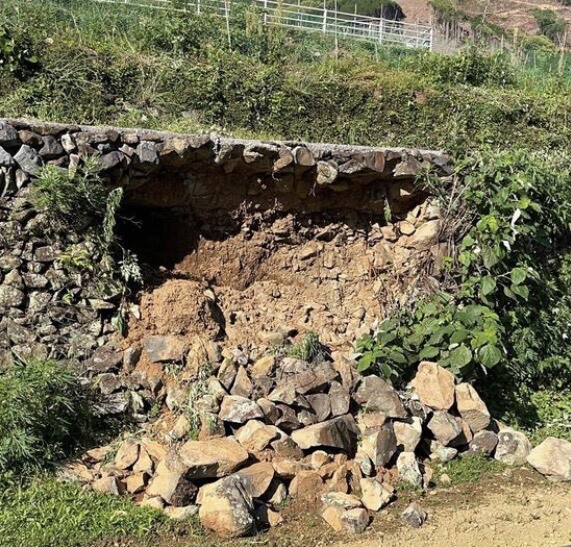 今年4月に発生した地震(当地域は、震度6弱)の後に降った大雨で、一部の石垣が崩れてしまう事案が発生しております。