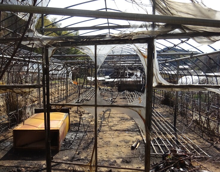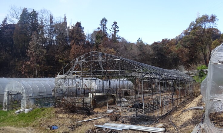 その中にはビニールハウス5棟・作業用倉庫もあり火事に巻き込まれてしまいました