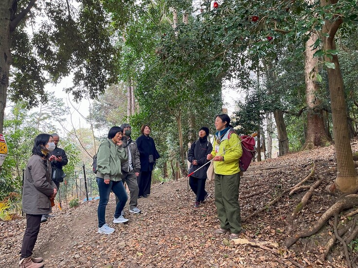 私たちが11月に隠岐に行く前もってオンラインで授業を行い、ヤマネの生態や野外での巣箱調査の意義や方法を伝えました。そして、皆さんのご寄付のおかげで、実際に隠岐の島へ一緒に行き、子供たちと森の調査(図7)を行うことができました。