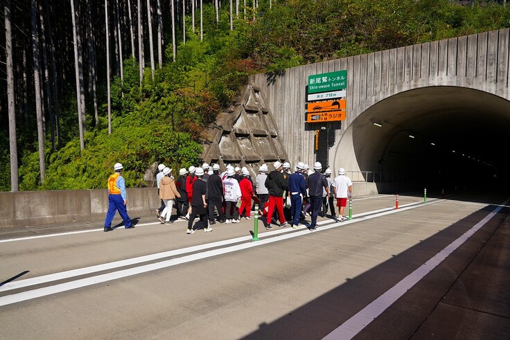 図22.トンネル坑口の植栽現場 図23. 高速道路を歩く生徒