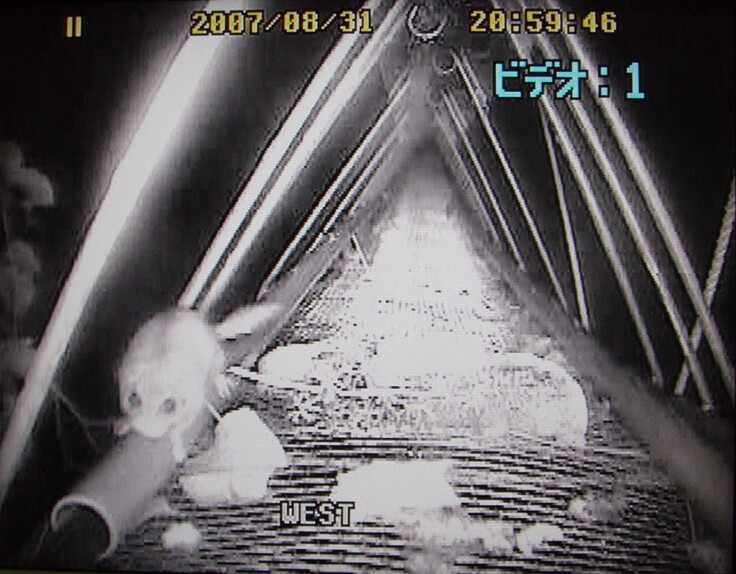 アニマルパスウェイのモニタリング映像では、ヤマネやヒメネズミが巣材をくわえて橋を渡る姿、