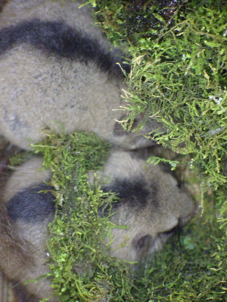 その間から背中に黒い筋のある小さなものが2本! 2頭のヤマネだ。