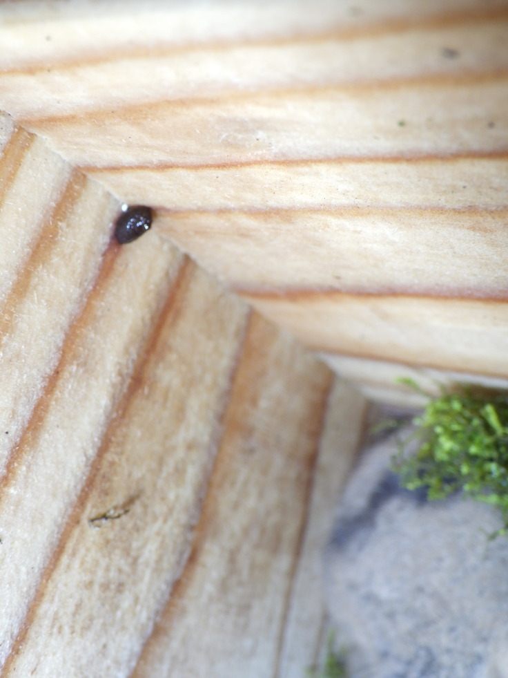 1つの巣箱を見ると緑色のきれいな蘚苔類があった。