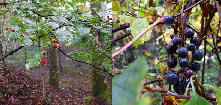 ヤマブドウも木の上で生っている。
