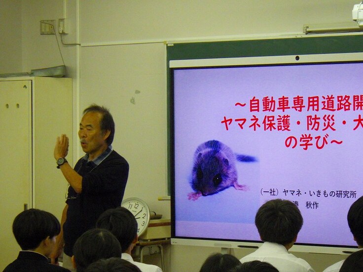 自動車専用道路(高速道路)開発とヤマネ保護との共生、南海トラフの地震から紀伊半島の地史を知り、防災の重要性を体感する視察・体験を行う前の事前学習でした。