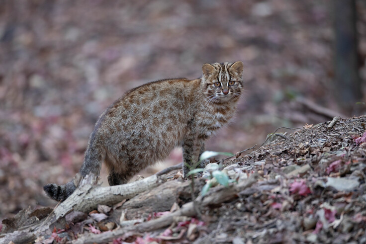 また、幼獣のころは普通のネコのように耳先がとがっていますが、成獣になるにつれ丸くなります。イエネコと同じくらいの大きさで、頭胴長60~65センチ、尾長25~35センチぐらいで、体重は2〜5kgくらいで、オスの方がメスより大きいです。