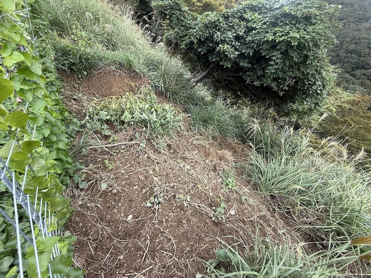 メッシュワイヤー際の草が食べられてスキマができています。