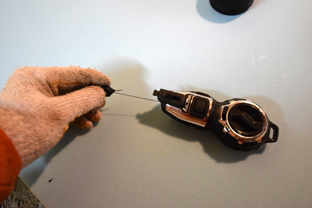 この墨壺のいいところは、長い距離でも直線が一気に引けるところ。