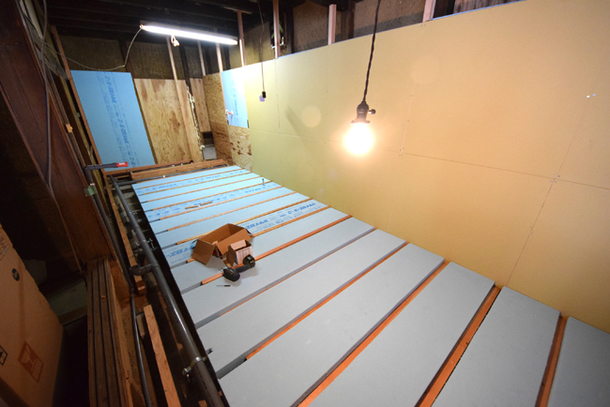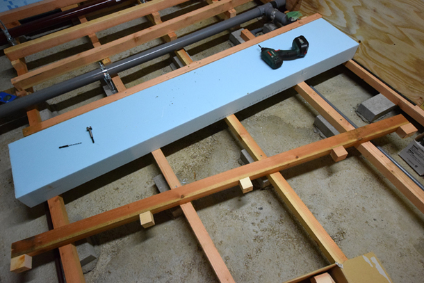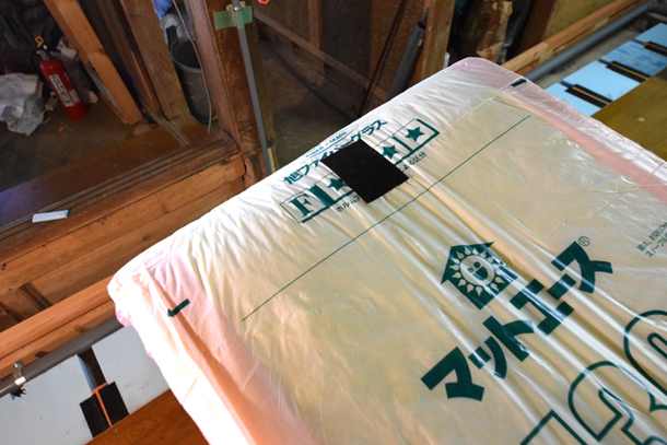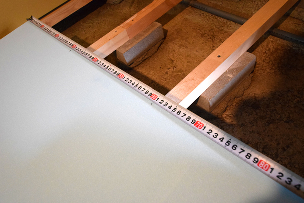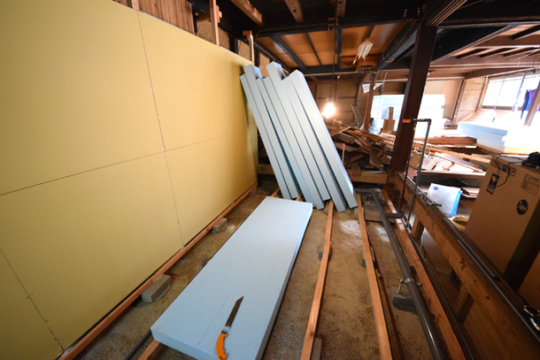 床の高さを105mm上げたので、その間にスタイロがストーンと入ります。