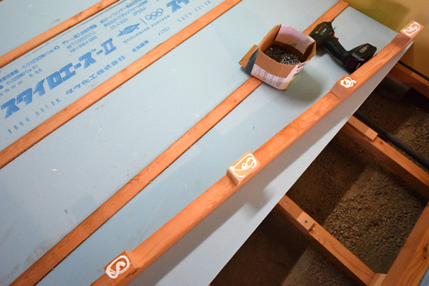 そんなもん素人には無理なので、スタイロに合わせて木材を置いていく方が