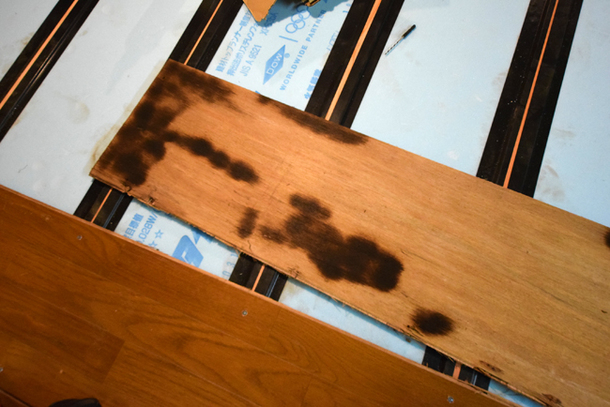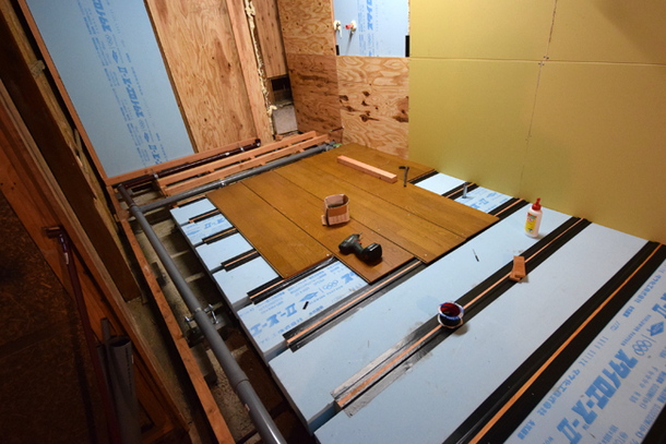 以前のキッチンを解体したときに外したフローリングが厚さ12mmあって、