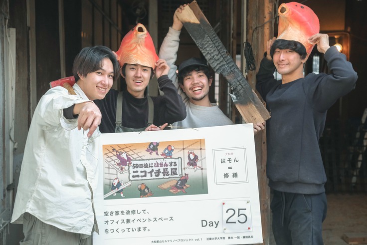 そんな中、この場の創出に向け、近畿大学の建築分野の大学院生の勝本と藤田が、大和郡山市に眠っていた二軒長屋の一軒分をセルフリノベーションしていく『50日後に"はそん"するニコイチ長屋プロジェクト』を立ち上げ、長屋の改修に精力的に取り組んでいます。