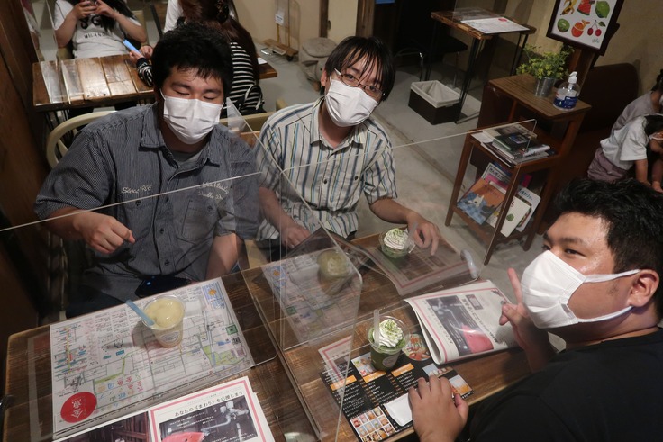 高専チームで、周知活動としてポスター掲示やビラ配りをしつつ、商店街を歩きました!