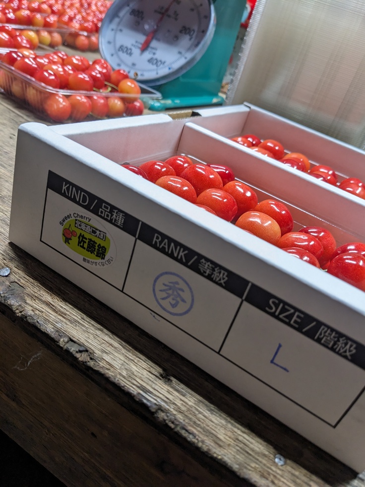 (佐藤錦同様、すでに味が乗っており、中旬ごろにはより美味しくなる見込みです…!)