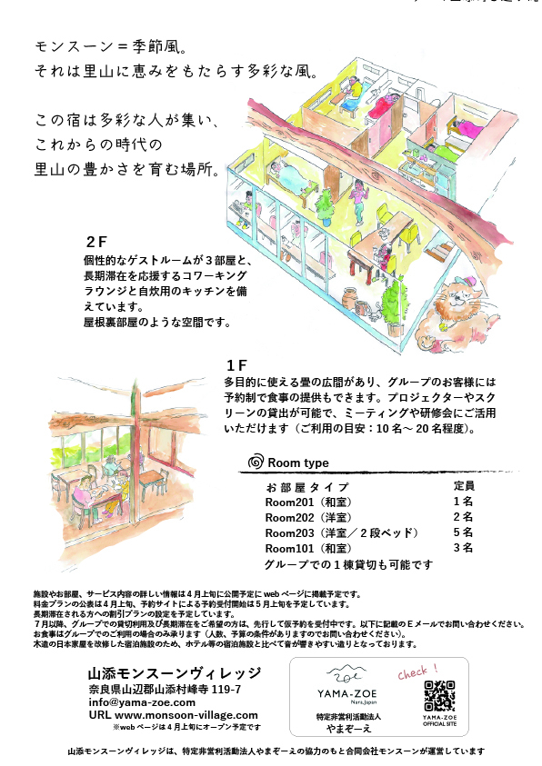 ご予約の受付開始はもう少し先になりそうですが、確実にオープンしていることが見込まれる7月以降のグループでのご予約と長期滞在希望の方のご予約は、仮予約としてメールで承っておりますのでどうぞお問い合わせくださいませ。
