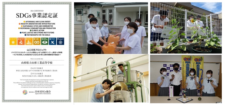 私達生徒会では、学校目標にもあるSDGsの取り組みを推進しています。全校生徒がSDGsを意識して生活することで、地球の未来を変えられると信じています。このプロジェクトでも7、9、11、12、13、16、17を申請して、2020年7月22日に日本SDGs協会から、このプロジェクトを認定していただきました。これからの未来は私たちがつくる未来になります。持続可能な社会について考え、実行していきたいと思います。昨年から、技術的なことばかりでなく、この活動を多くの人に知ってもらうために、地域との連携も考え、近所の保育園や料亭から廃油をいただいて、BDFを生成しています。山辺高校さんとコラボして、未熟マンゴーを使ってケーキを開発してもらいました。多くの人とつながったり、廃油や未熟マンゴーも無駄にしない取り組みも考えています。