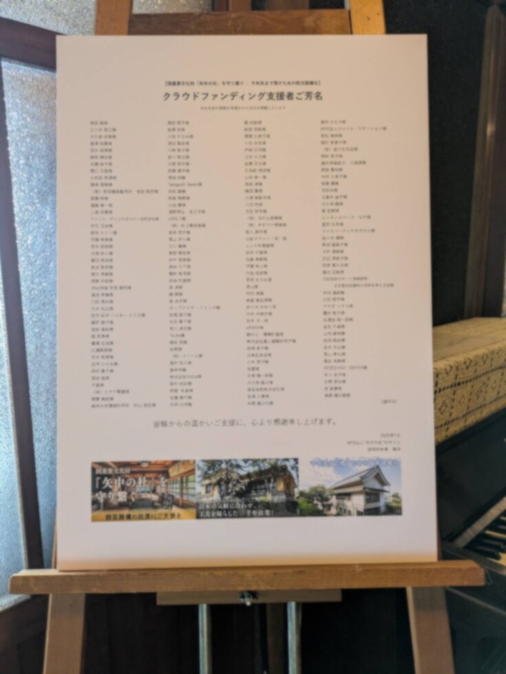 支援者のお名前(希望者のみ)を邸宅内にて掲示させていただきました