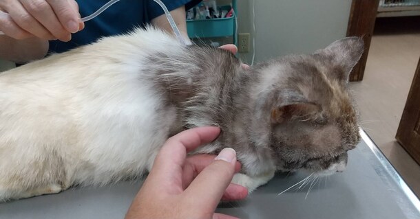 にゃんちき隊員は、昨日免疫抑制のためステロイドを注射。高熱は下がり、シリンジでご飯は少しづつ食べています。