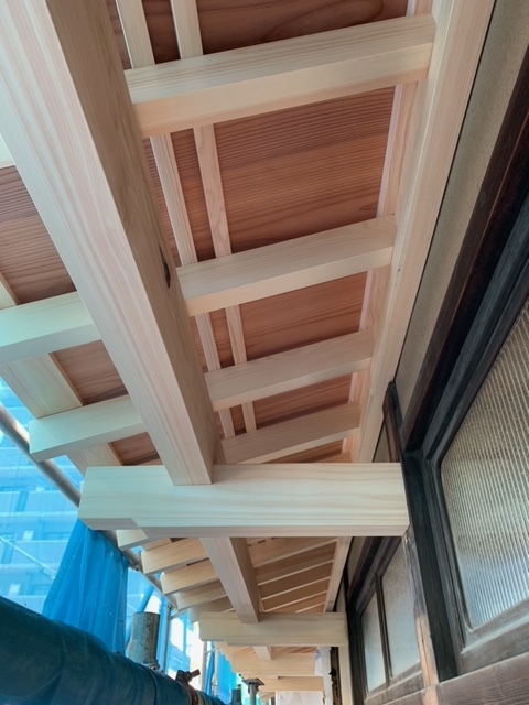 古くなった軒屋根撤去して、新しい軒屋根を製作中です。