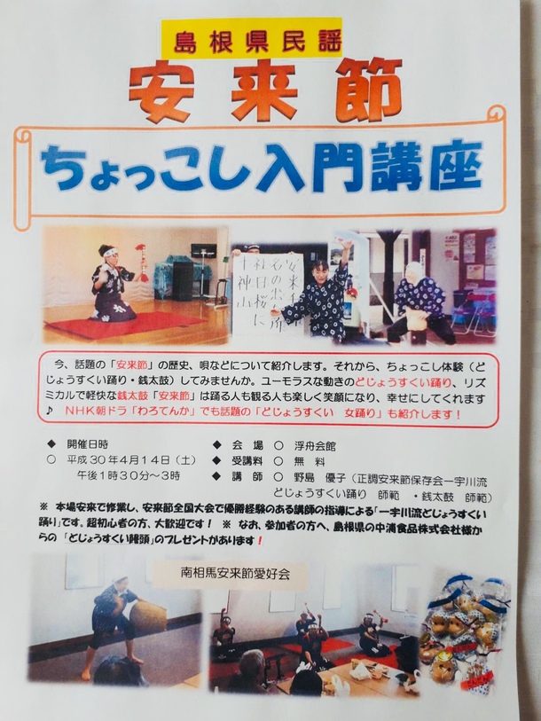 福島県南相馬市で安来節の「無料体験講座」を開講します!
