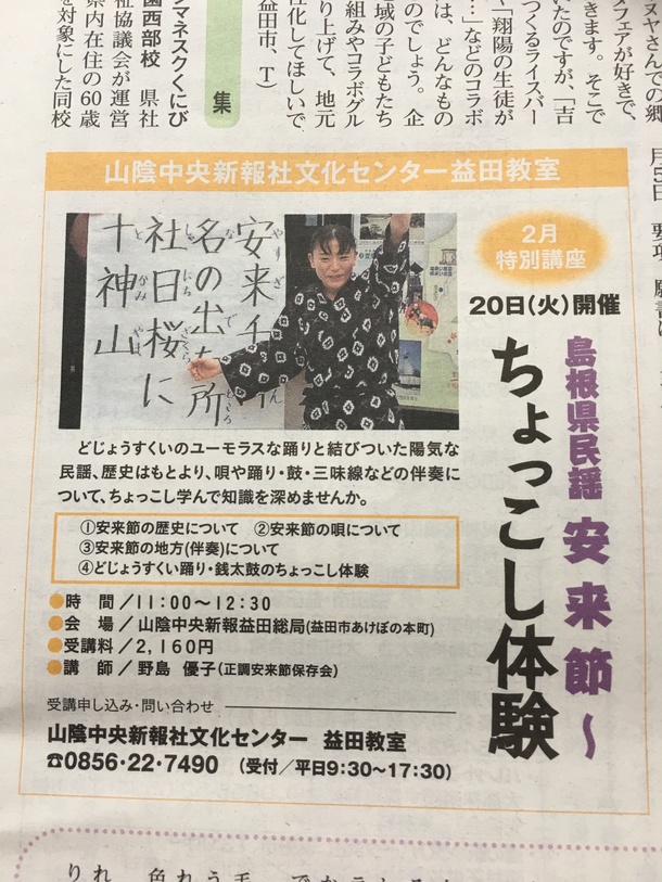 ②「安来節2種目体験講座(30分×2種目で60分)」