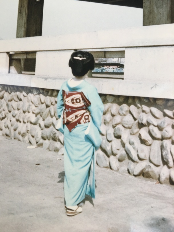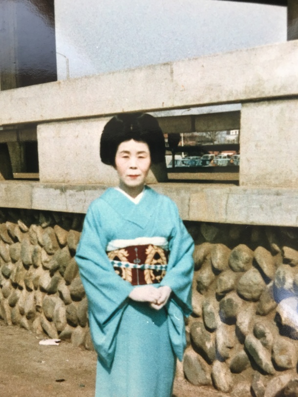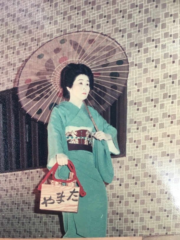 『一番印象に残っているのは、大月の文化会館で行われた舞台です。舞台の袖から一艘の舟に乗って滑り出てきた母(=私の祖母)は、凄い拍手を受けていました。舞台に降りてからも見事な舞で、船頭捌きの長い棒を、左右上下に大きくふり、立ち回った男踊りの日舞でした。かと思いきや今度は、全然違うタイプの「おてもやん」の頬っぺたに可愛い衣装で登場。それは見る人を大笑いさせていました。母(=私の祖母)は古典舞踊だけでなく、新舞踊にも積極的に力を尽くした人でした・・』