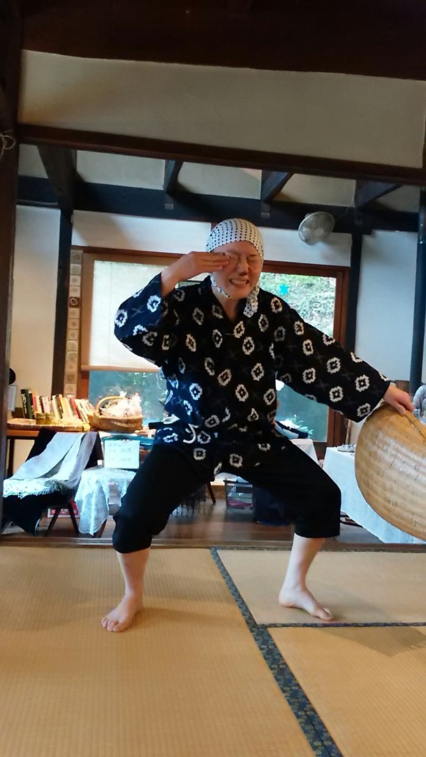 どじょうすくい踊りの体験コーナーに小学4年生の女の子2人が参加してくれました!このコーナーでは、もちろん!CFの支援金で購入した道具を活用させていただきました。