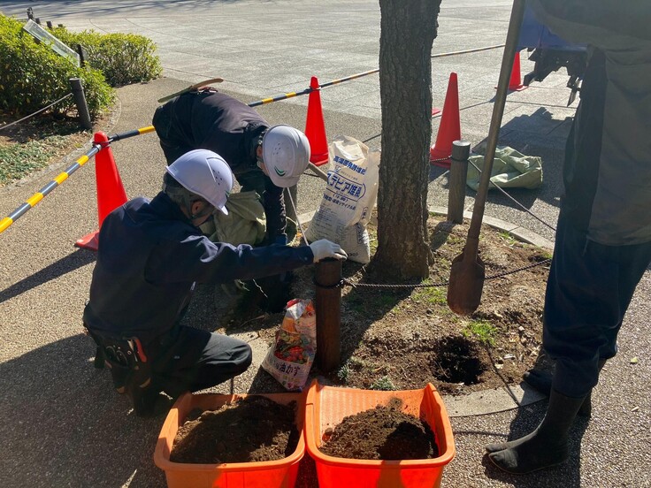 春に元気な新芽を出させるための栄養補給と同時に、土壌の活性化を図る作業です。