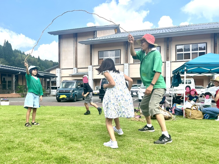 縄を使って、飛んだり、跳ねたり、くぐったり。