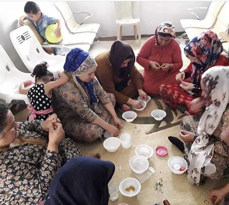 YDYが創立するきっかけとなった、イラクに避難しているシリア難民のお母さんとのアクセサリーワークショップ。