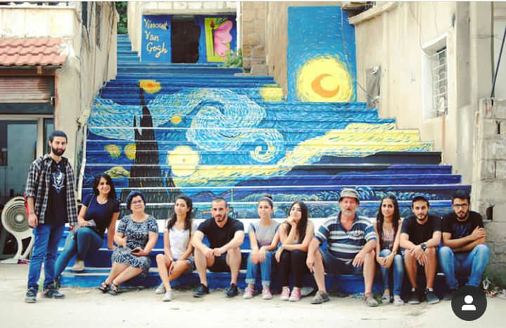 ↓ラタキアの街の階段絵。ヒヤーム氏夫妻と若者チームで町にペインティングを行っている。