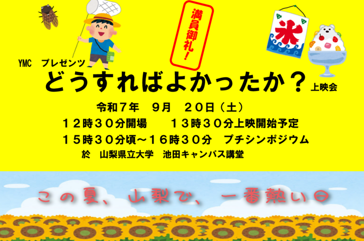 当日、配布する上映会の次第に、ご支援をいただいた方としてお名前を記載させていただきます。上映会終了後、Yamanashi Movies Connectから感謝のお手紙を送らせていただきます。