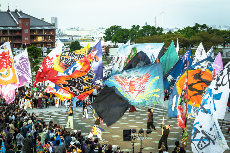 私たちは第一回横浜よさこい祭り立ち上げから関わっています。初年度は春の開催で、みなとみらいと馬車道を同日開催し、チームとしてはその年の新作発表の場にもなり、てんてこ舞いだったのを覚えています。横よさが第一回から変わらないのは、横浜に来てくださるよさこいチームさんやお客様が楽しめるようにと常に考えている所です。スケジュールは前後のチームさんが同じにならないように組んだり、他地域の地域の総踊りが見れるようにしたり、大旗の演舞も企画ものにしていました。現在はコロナ禍で実行委員会のメンバーが顔を見て交流できない状況で、オンラインのみになっていますが、チームは違えど同じ想いでずっと関わっていける仲間に囲まれて心強いです。「小さな力も集まればきっと大きな力になる」踊り子たちで作るよさこい祭り。この先も横よさに関わる仲間が増えて、地域に長く根付くお祭りになることを願っています。