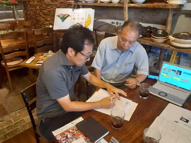 花火申請の打合せをする山田さんと田鹿委員長