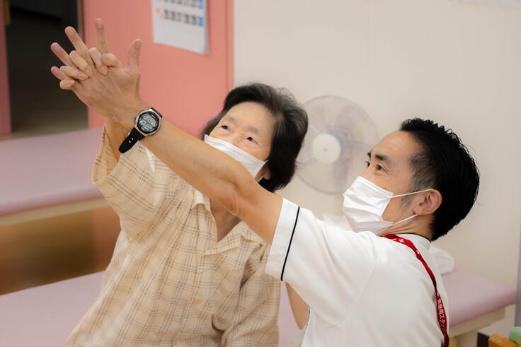 リハビリテーションでは、運動器疾患や脳血管障害のリハビリに加え、日常生活に戻るための作業療法にも取り組んでおります。特に、患者さんの気持ちに寄り添う温かい対応が特徴で、一人ひとりに合った支援を心がけています。