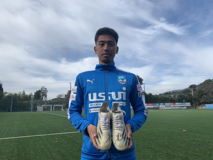 サッカー部OBである伊藤 龍生選手(アスルクラロ沼津)よりサイン入りスパイクをリターンとして提供いただきました!