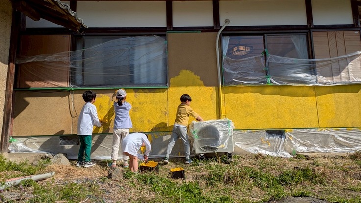 4/6 にクラウドファンディングリターンの壁面塗装ワークショップを無事とりおこないました。これにより、DIY工事と業者さんによる工事すべてが完了し、外装内装含めてOPEN準備が整いましたことをご報告いたします。