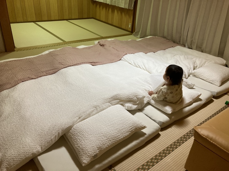 0歳児と泊まっても安心できるように危険なものがないシンプルな和室にしました。