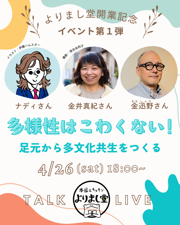 【開業記念イベント第1弾】4/26(土)金井真紀さん × 金迅野さん × ナディさん