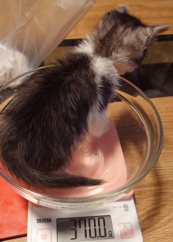🐈うちに来た初日(生後2週間ほど)の体重は300gでした。
