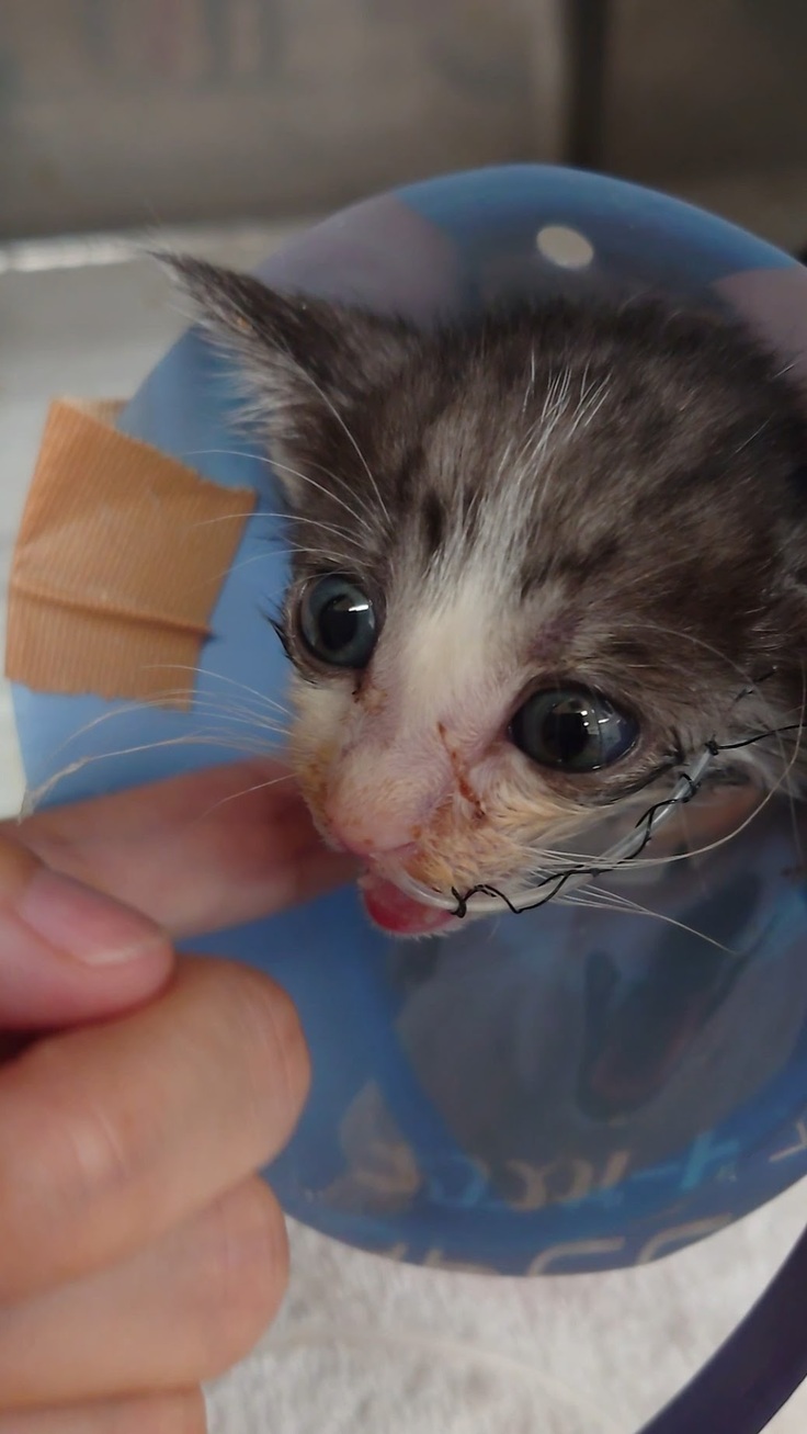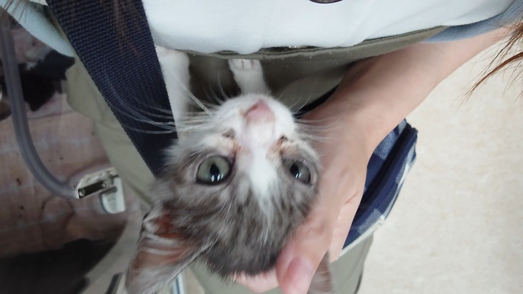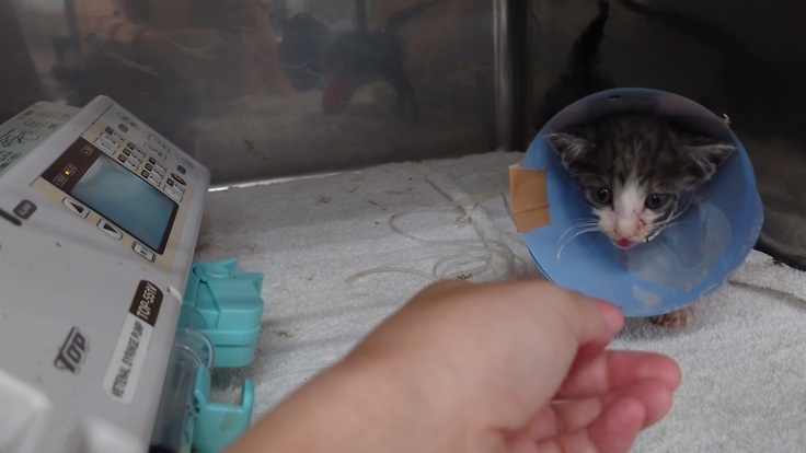 ハルクが来て1日目。ほ乳瓶でミルクをあげてみると吸い付きが弱く、シリンジでミルクをあげました。ハルクは1滴1滴をゆっくり味わうように飲む子でした。1回目のミルクの時は飲むのがちょっと下手な子なのかなぁ。かわいいなぁ😊と思っていました。でも、2回目も3回目もそのような飲み方で、量が飲めないという心配うんぬんじゃなくて、1滴飲んだのを確認して次の1滴をあげないとガボガボッと溺れてしまう感じになっており、飲み込む力が弱いように見えました。そして、今までの子猫とは違う違和感をハルクに感じながら、いや、でも保護してすぐだから体力がついてないだけかも。すぐ元気になってくれるだろう。と祈りながら、翌日病院に相談に行きました。