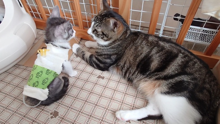 獣医さんが医療用の高カロリーのムースを指で少量ずつ口に入れてあげるともぐもぐ食べることが出来たのでこの日は点滴をしてもらい、胃腸が動くお薬と医療用のムースを処方してもらい帰宅しました。少量を口に入れると最初の1口2口は食べて飲み込めるのですが、それ以上食べさせてもペッペッと首を横に振って食べ物を出そうとするような、人間でいうと咳き込むような感じが続きました。
