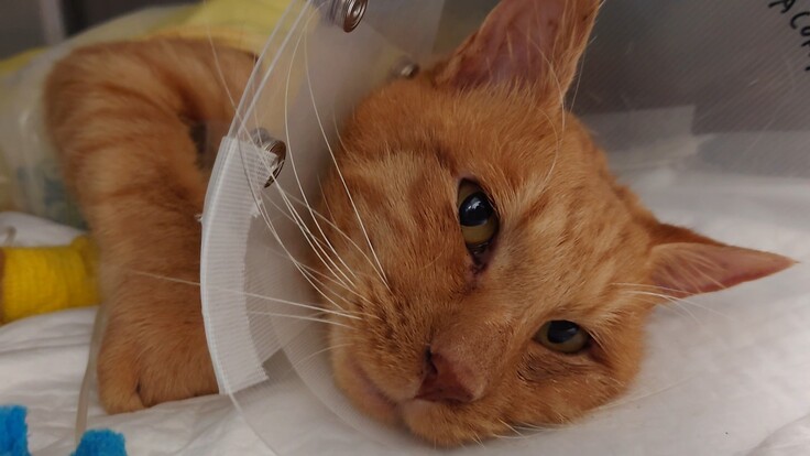 いろいろな管で繋がれている手術を頑張ったヨッちゃん🐈