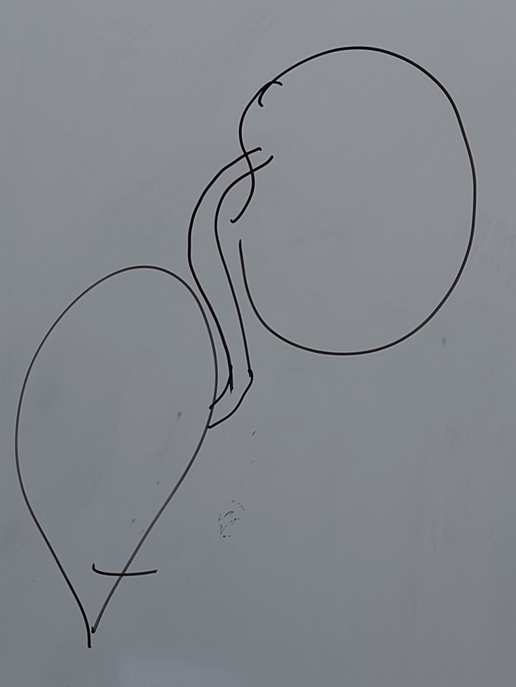 ②尿管が詰まって細くなっているもう使えない尿管の部分を切って、使える尿管と腎臓と膀胱をつなげる手術(ヨッちゃんの残存機能を残す手術)