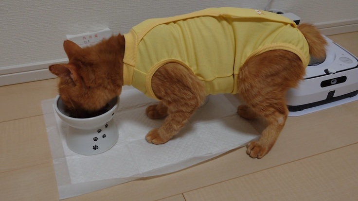 🐈術後服のせいで後ろにズッコけるヨッちゃん🐈