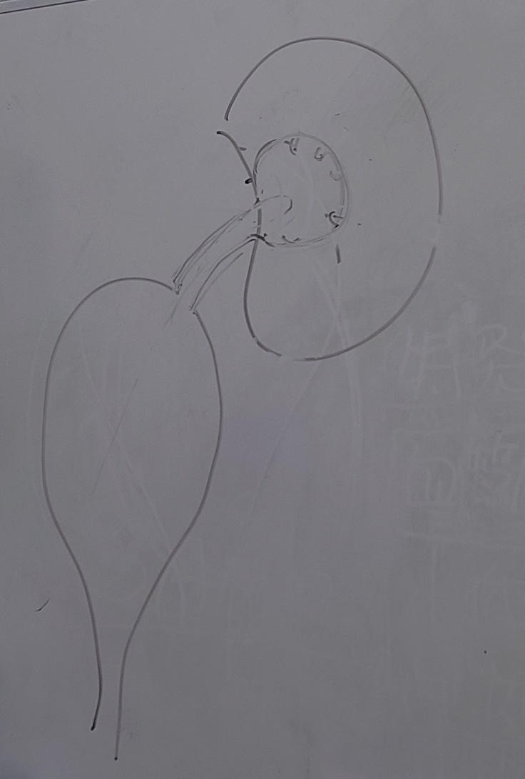 ヨッちゃんが腎盂が小さくならずに腎臓と腎盂が肥大したままとなっている要因で考えられるのが、ヨッちゃんの尿管が手術をしたので短くなっているんだけど、本来は拡張した尿管は術後に徐々に元の細さに戻っていくんだけど、ヨッちゃんは手術後にカテーテルを入れていた時の太さと現在の尿管の太さに変化がないままだったということが考えられる。もしかしたら尿管が太いままなので、膀胱と腎盂の陰圧が一緒になっており、うまく膀胱に流れていなかったり、膀胱から腎臓に逆流してしまってるのかもしれない。と先生から説明を受けました。